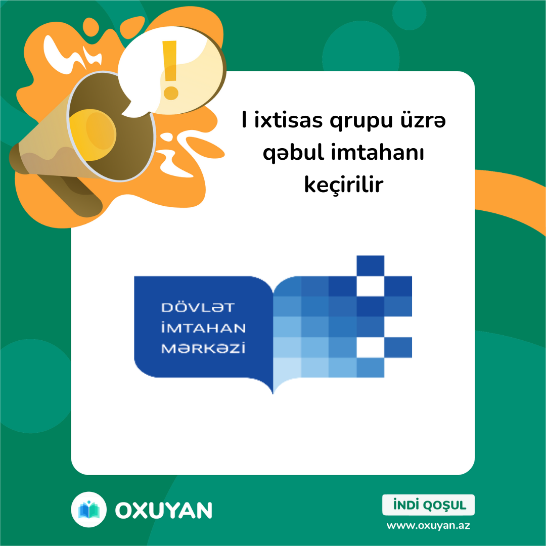 27 iyul 2021-ci il tarixində Dövlət İmtahan Mərkəzi tərəfindən I ixtisas qrupu üzrə ali təhsil müəssisələrinə qəbul imtahanı keçirilir. İmtahan Bakı, Gəncə, Qazax, Ağstafa, Şəki, Bərdə, Göyçay, Şirvan, Salyan, Lənkəran və Xaçmazda təşkil olunur. İmtahan saat 10:00-da başlanır. İmtahanın başlanmasına 15 dəqiqə qalmış…